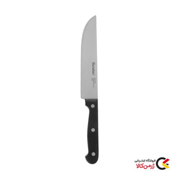 چاقو یکی از ابزار های پر کاربرد و مفید در هر آشپزخانه ای است چاقو ها مدل ها و کاربرد های متنوع ای دارند چاقوی متالتکس یکی از انواع مختلف چاقو می باشد که از کیفیت و استحکام بالایی برخوردار است این چاقو به دلیل تیغه تیز و با کیفیتی که دارد بهترین انتخاب برای آشپزهای خانگی و حرفه ای می باشد. تیغه چاقو آشپزخانه متالتکس از استیل ضد زنگ ساخته شده است که با گذشت زمان و در اثر استفاده زیاد تغییر شکل نمی دهد می توانید سال ها از آن استفاده کنید دسته چاقو از پلاستیک مرغوب ساخته شده است طراحی این محصول منحصر به فرد بوده به خوبی در دست شما قرار می گیرد و در هنگام کار نمی لغزد همچنین به دلیل طراحی ارگونومیکی که دارد از خستگی دستان شما هنگام کار جلوگیری می کند. چاقو متالتکس برای استفاده روزمره شما بسیار مناسب می باشد. لبه ی این چاقوی آشپزخانه بسیار تیز و برنده بوده و از فولاد مرغوبی نیز در ساخت آن استفاده شده است.