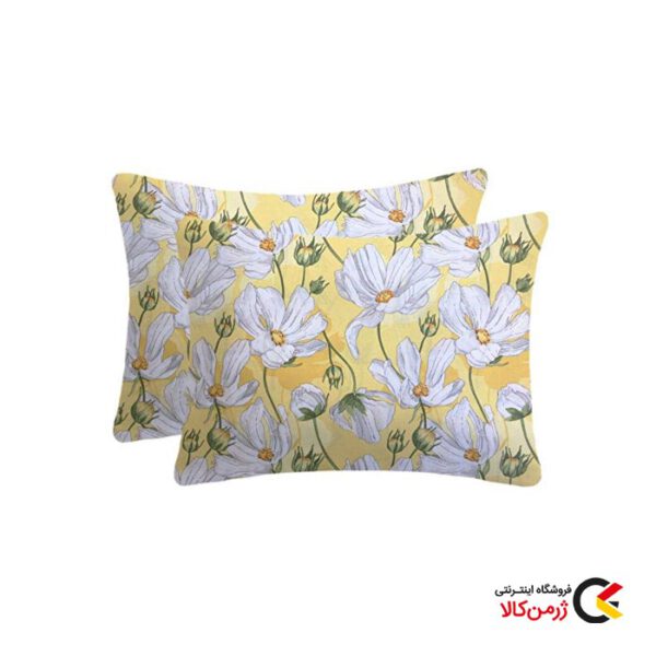 روبالشی نخی دو عددی طرح گل زمینه زرد لایف هوم